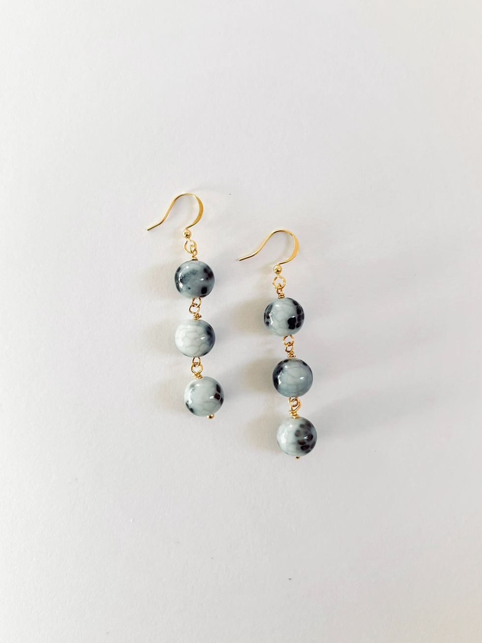 Cracked Agate Pearl Stacked Earrings